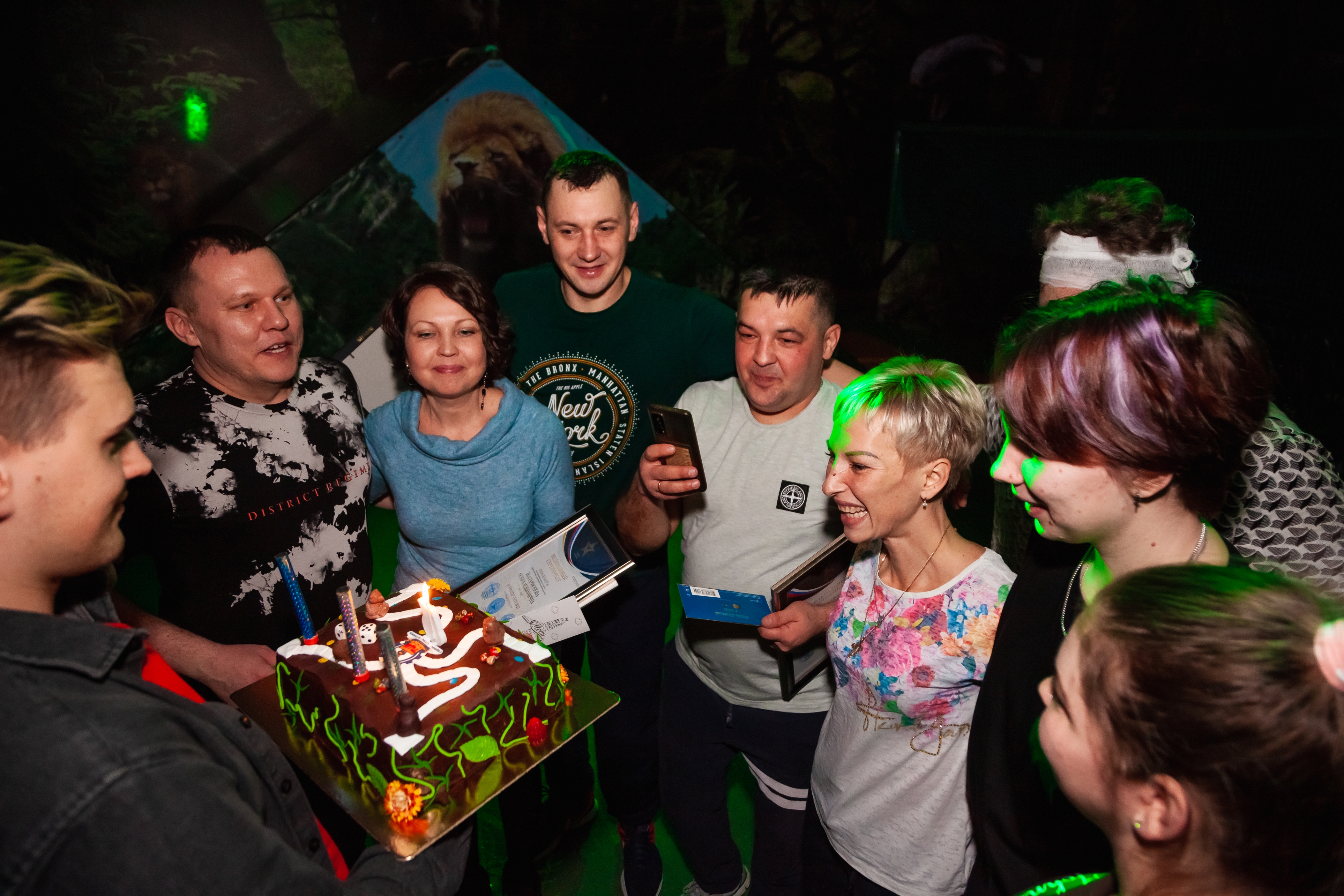 После игры мы плавно переходим в нашу банкетную зону, чтобы задуть свечи на торте и поделиться впечатлениями от игрового шоу или продлить веселье за праздничным банкетом.